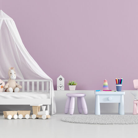 Para quem deseja um enxoval delicado e cheio de doçura, o rosa claro é uma ótima opção para combinar com o lavanda. Essa mistura cria um ambiente romântico, sem exageros, e transmite aconchego. O tom suave do rosa complementa a tranquilidade do lavanda, deixando o quarto ainda mais harmonioso.