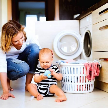 Basta programar a máquina para roupas delicadas e usar saquinhos para lavagem nos itens ainda mais delicados. Dê preferência ao sabão neutro, sem cheiro ou corantes. O sabão de coco, por exemplo, é uma ótima opção, mas existem diversas marcas apropriadas para bebês.